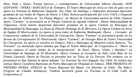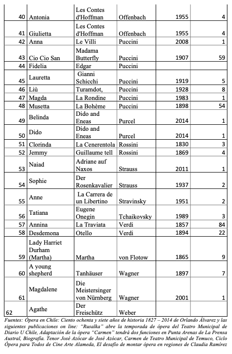 Primero, nadie había realizado un listado de las composiciones de óperas de Chile hasta el año 2018 (eso se piublicará más adelante) y también, como la interpretación queda en las sombras tras la falta de alcances tampoco había un listado de las óperas producidas en Chile hasta el año 2018.